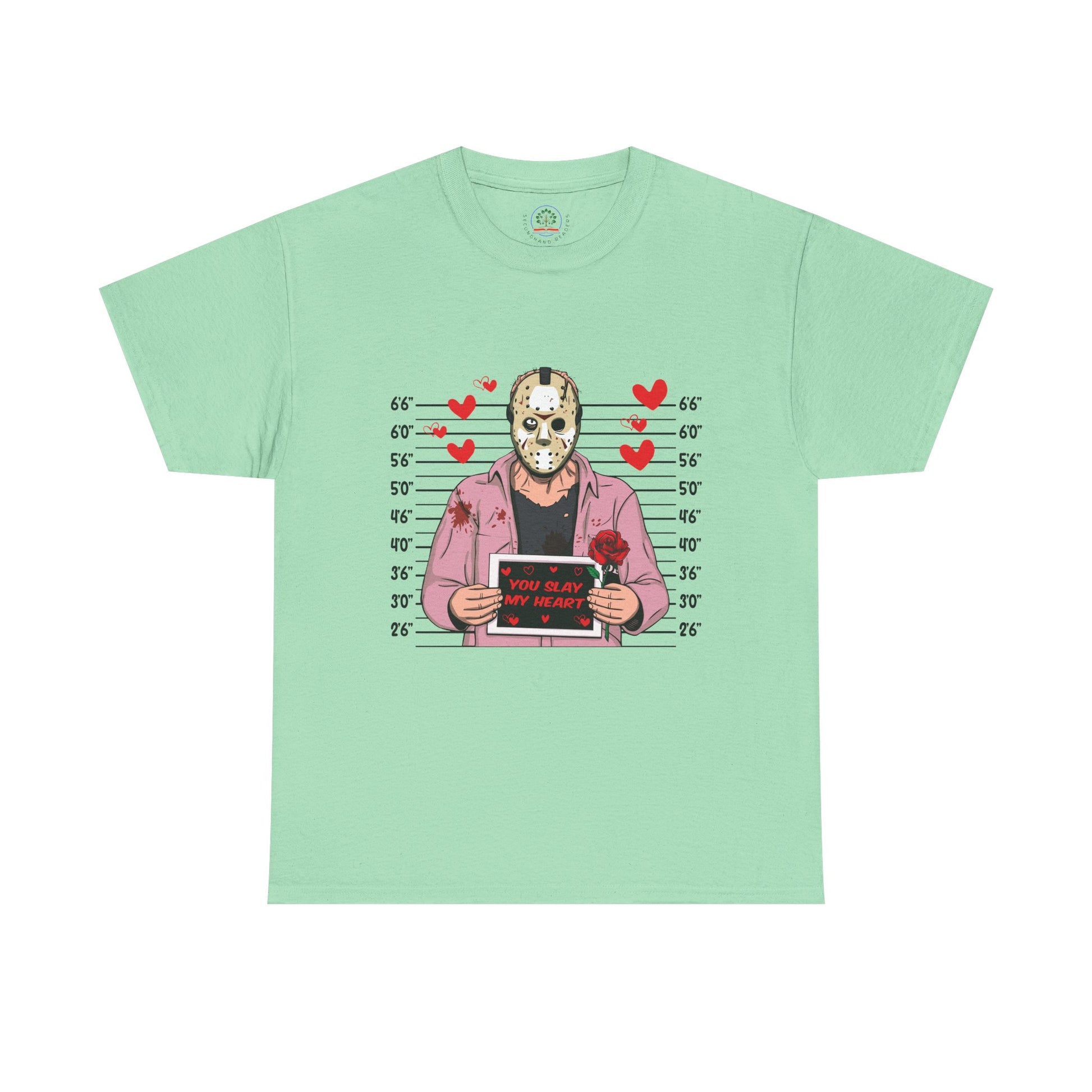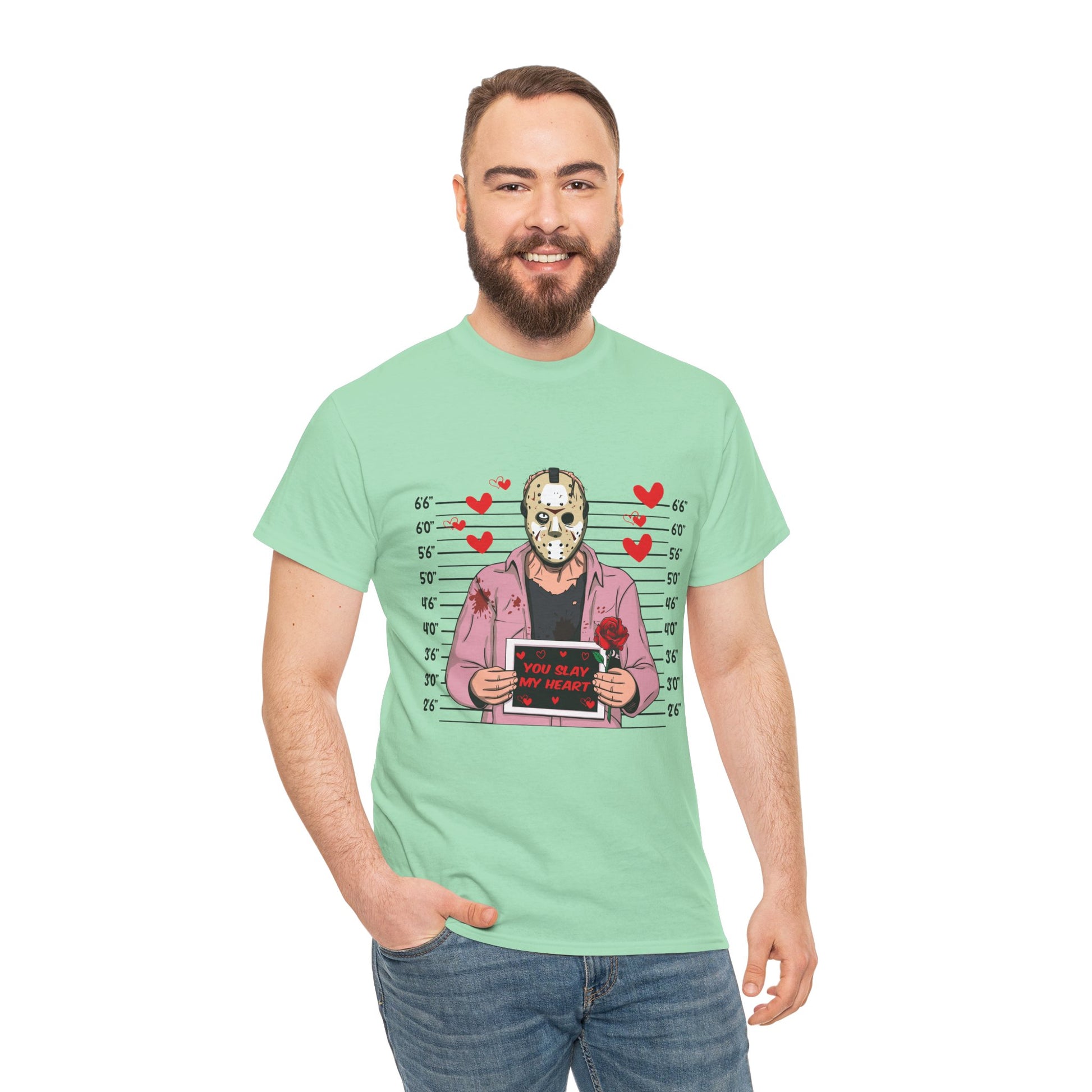 Jason Voorhees Mugshot T-Shirt - "You Slay My Heart" Cute Horror Valentine Tee